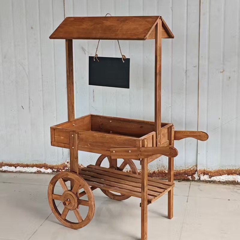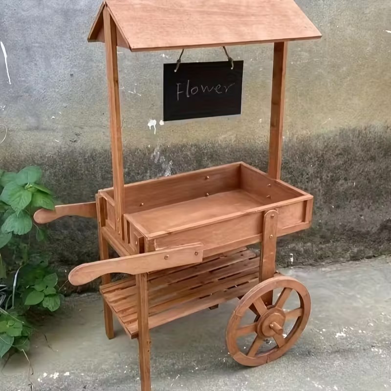 | Vintage Two-Tier Wooden trolley Plant Stand with Wheels
