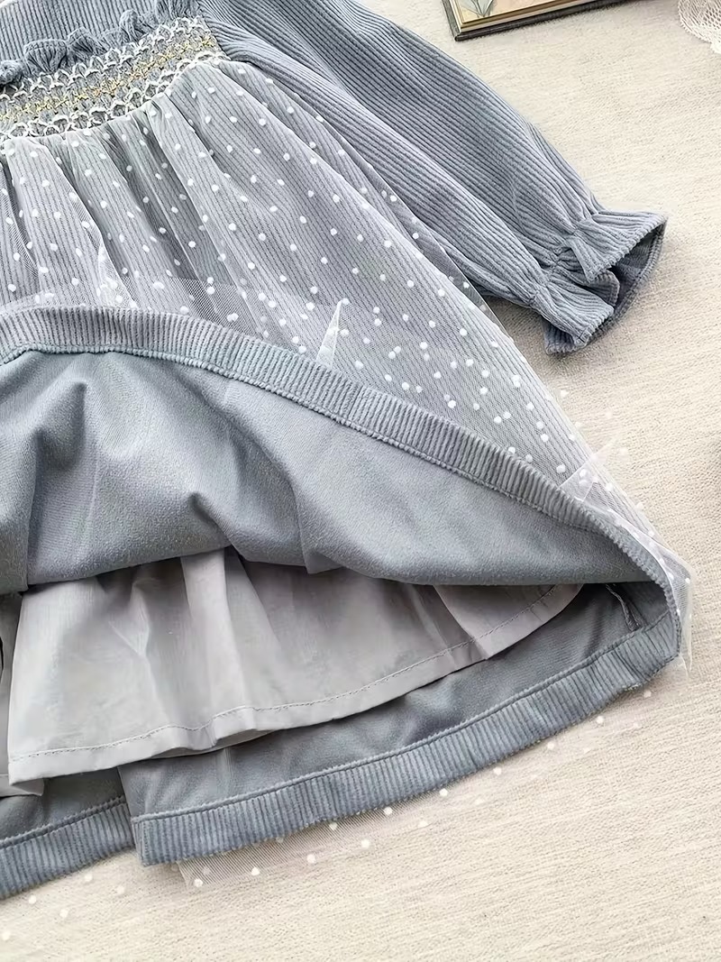 | Winter Dress with Ruffled Short Sleeves & A-Line