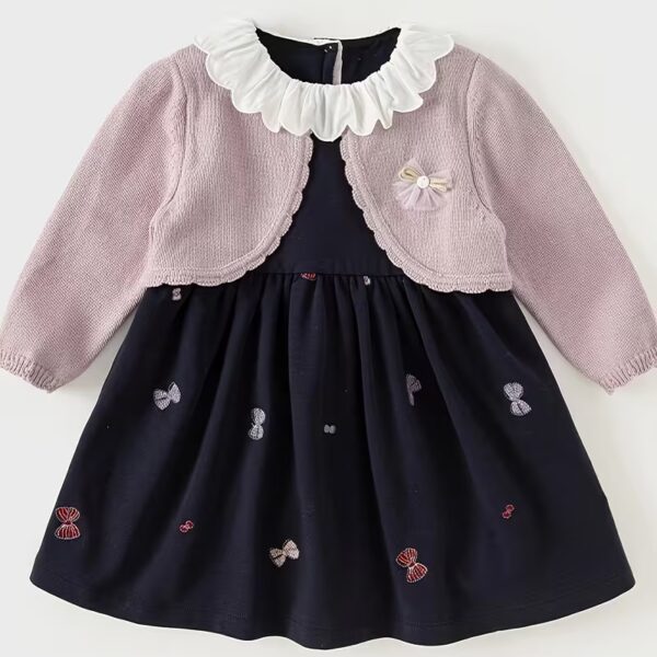 Autumn and Winter Girls’ Baby Doll Collar Floral Sweet