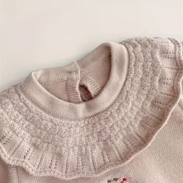 Soft Pink Long Sleeve Smock Dress with Ruffled Collar & Button Closure